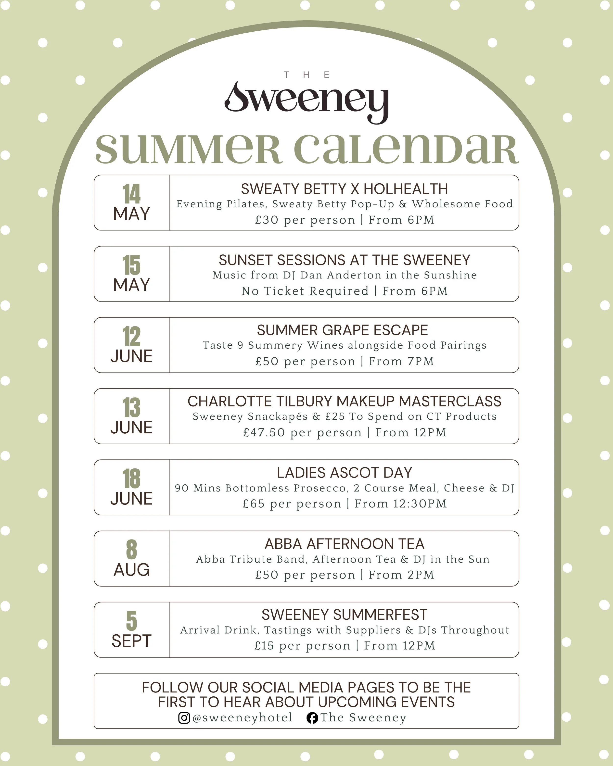 Explore what’s coming up at The Sweeney over the summer, from special dining experiences to seasonal events.